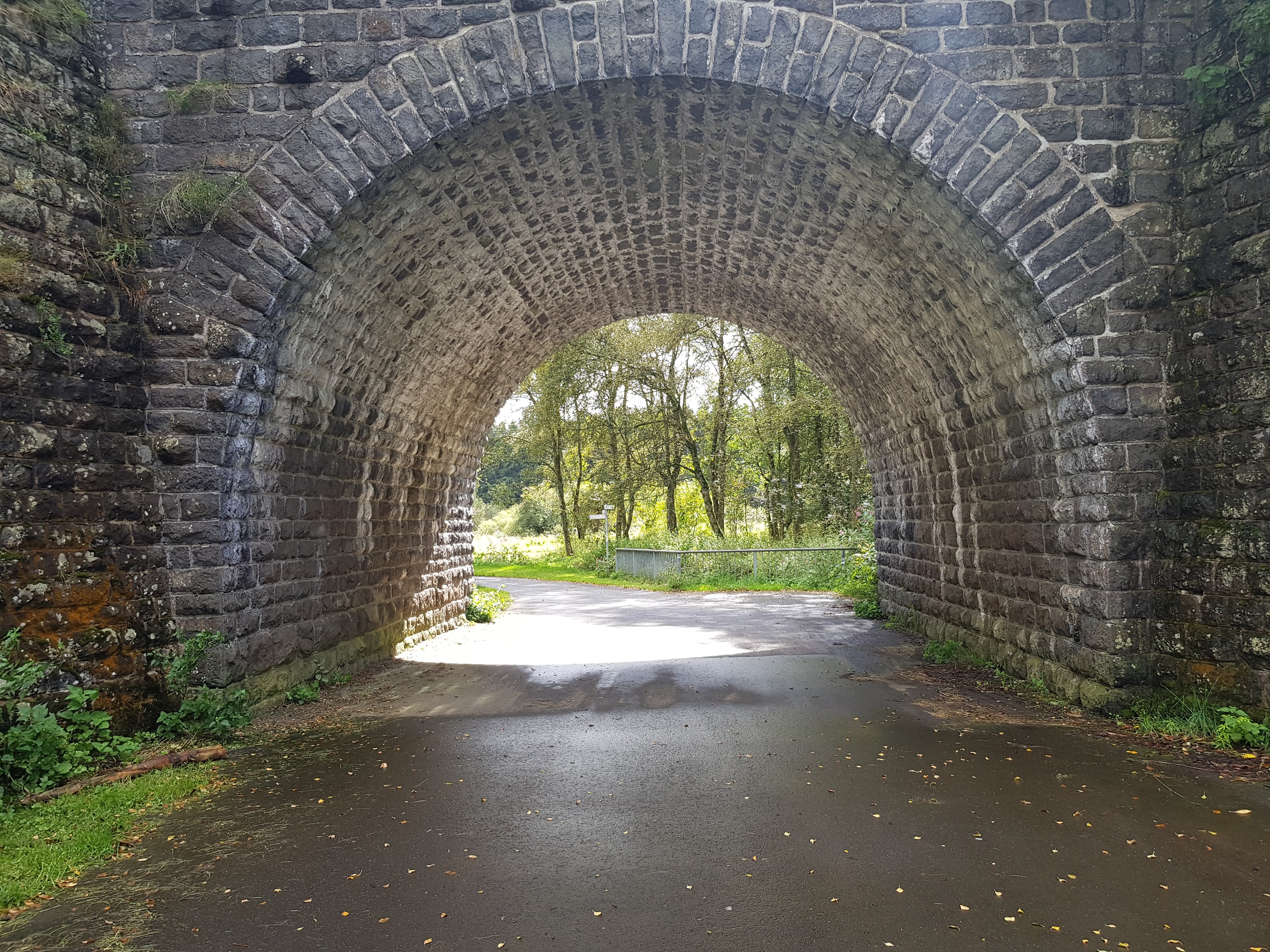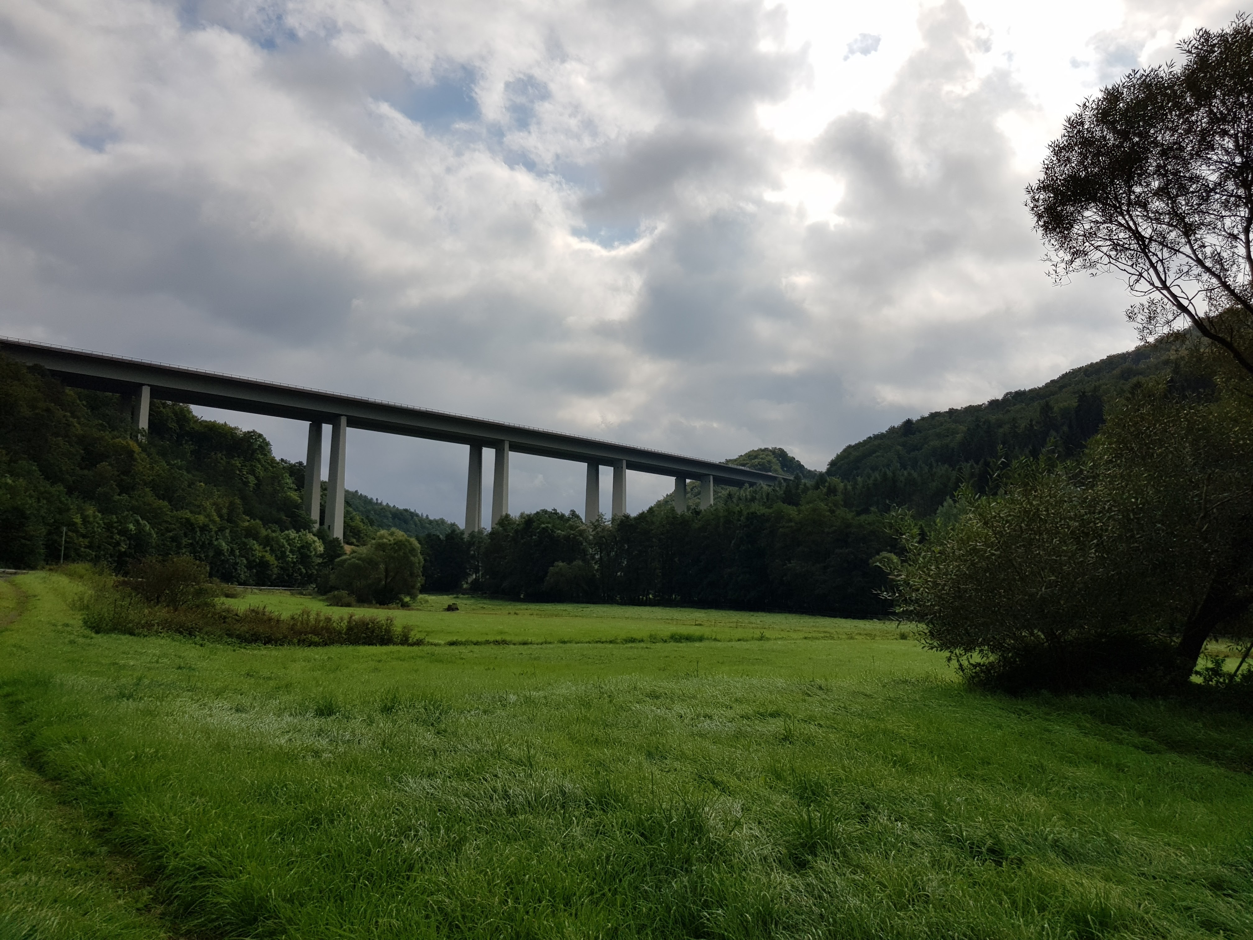 Das heißt, 6 km bis Bad Marienburg, überwiegend aufsteigend. Wir passieren ein Respekt einflößendes Viadukt, das sich in die Landschaft schmiegt.