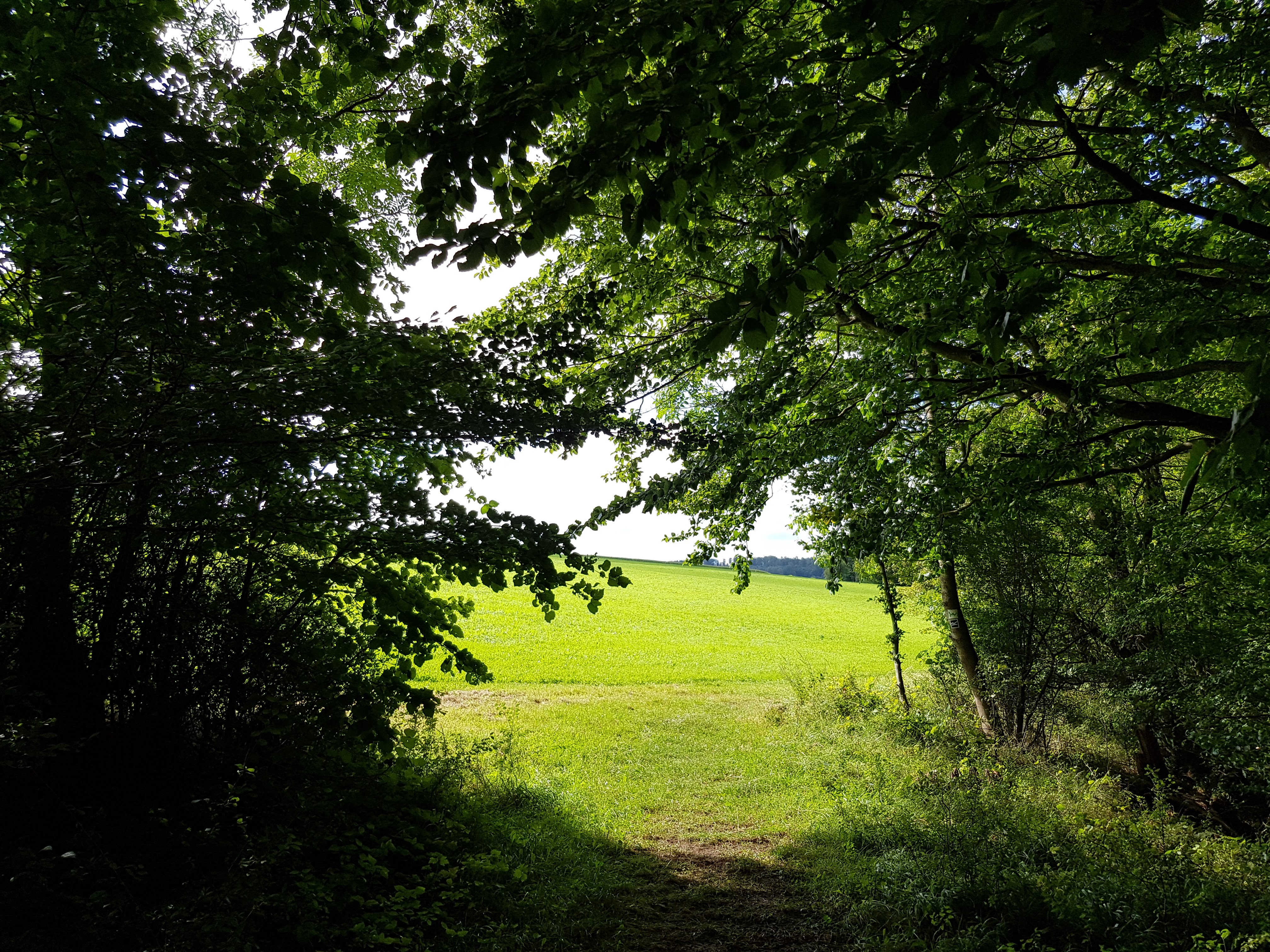 Auch heute wechseln sich die Wege ständig ab durch Wiesen und Wald. Es kommt auch so gut wie nie vor, dass man mal endlos geradeaus laufen muss. Kurzum – es fordert Aufmerksamkeit und bietet was fürs Auge. Es kann auch passieren, dass man umgefallene Hinweisschilder wieder aufrichten muss. Kerstin hat für solche Zwecke immer ihren Notfallhammer dabei.
