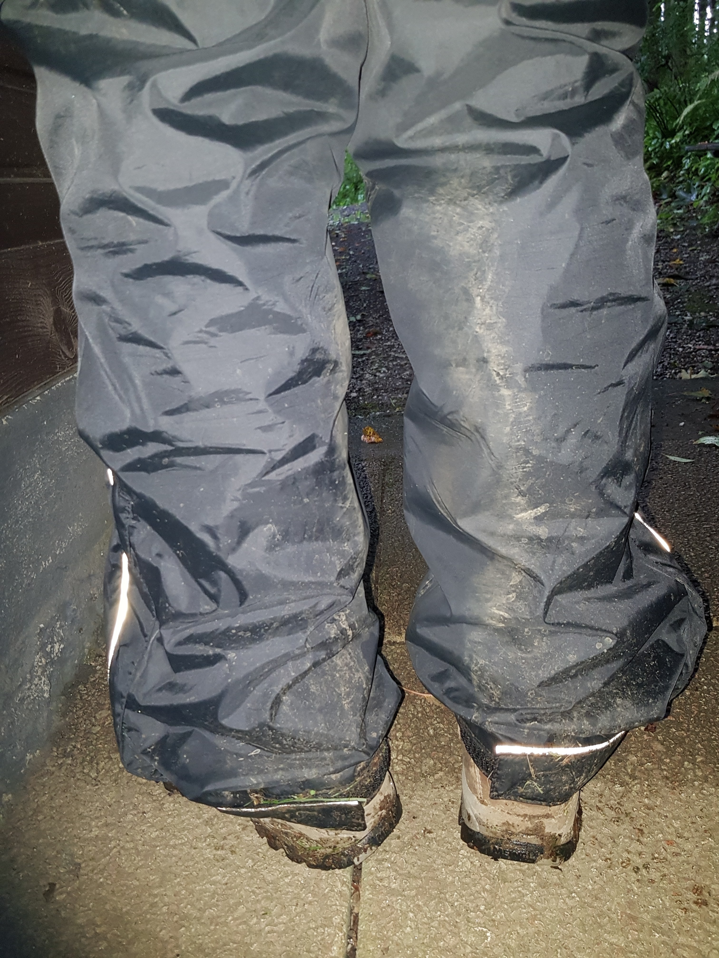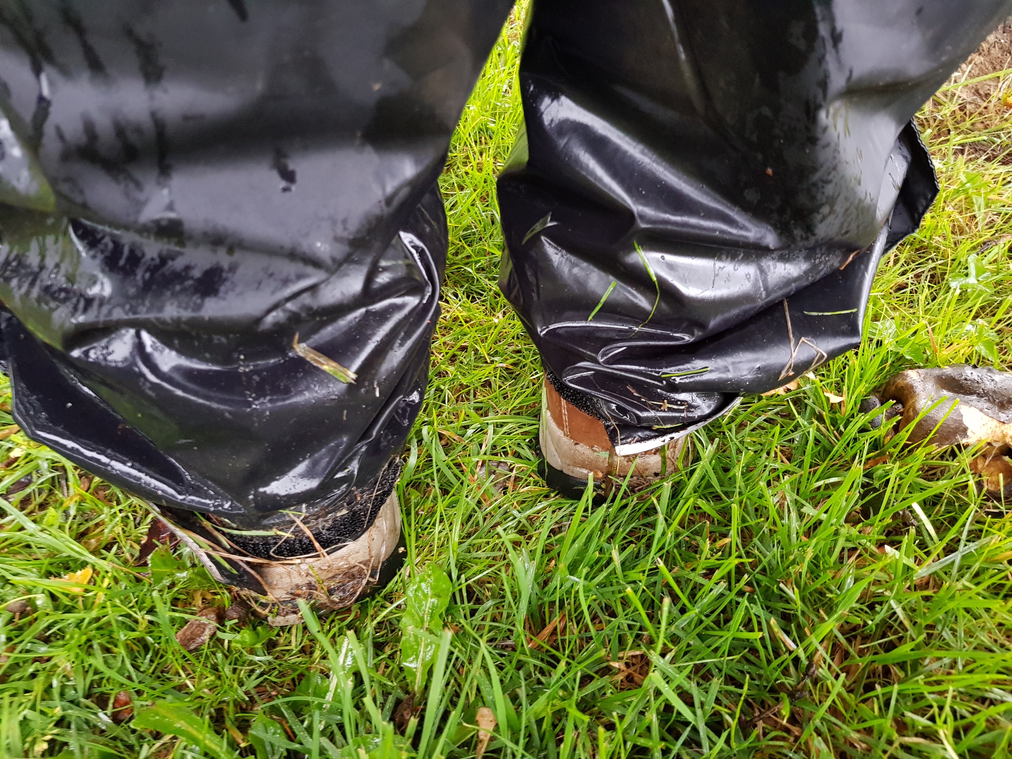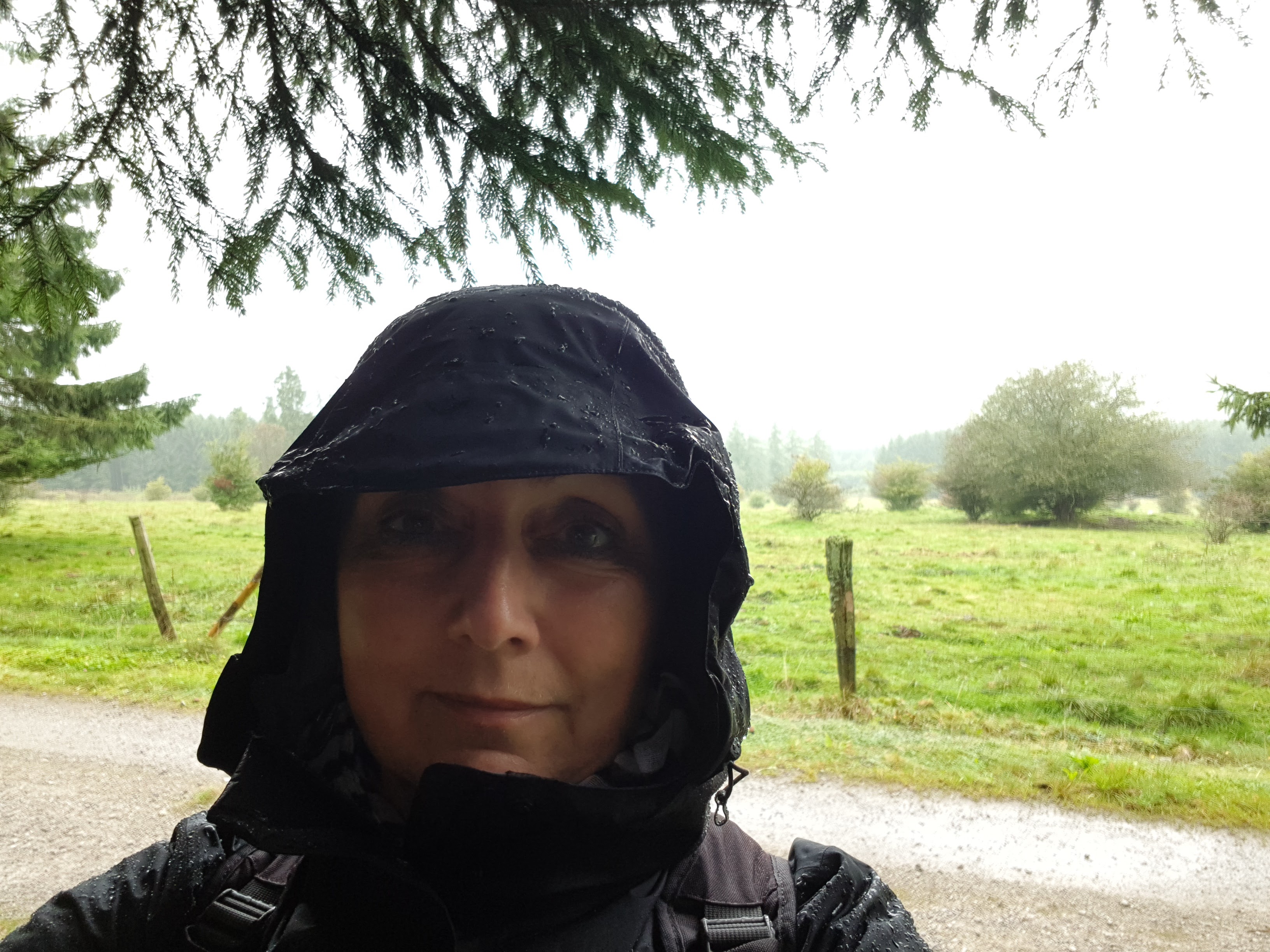 Unsere Regenkleidung schützt uns auf jeden Fall vor der Nässe, aber auf Dauer wird es auch unter der teuersten Regenjacke klamm und das Wasser tropft über die Hosenbeine auf die Schuhe. Am besten wären da wirklich Gummistiefel und Ostfriesennerz, glaube ich.