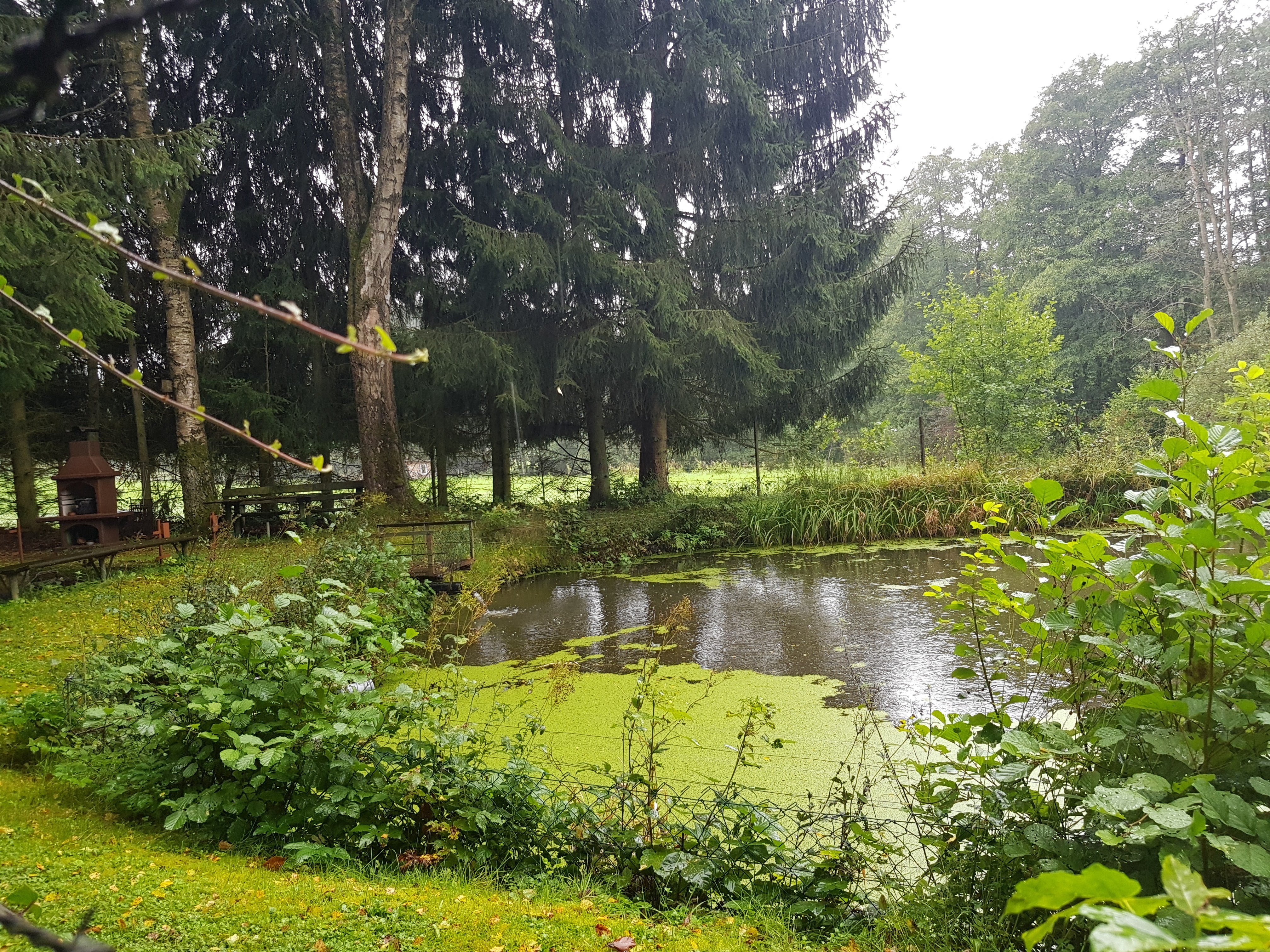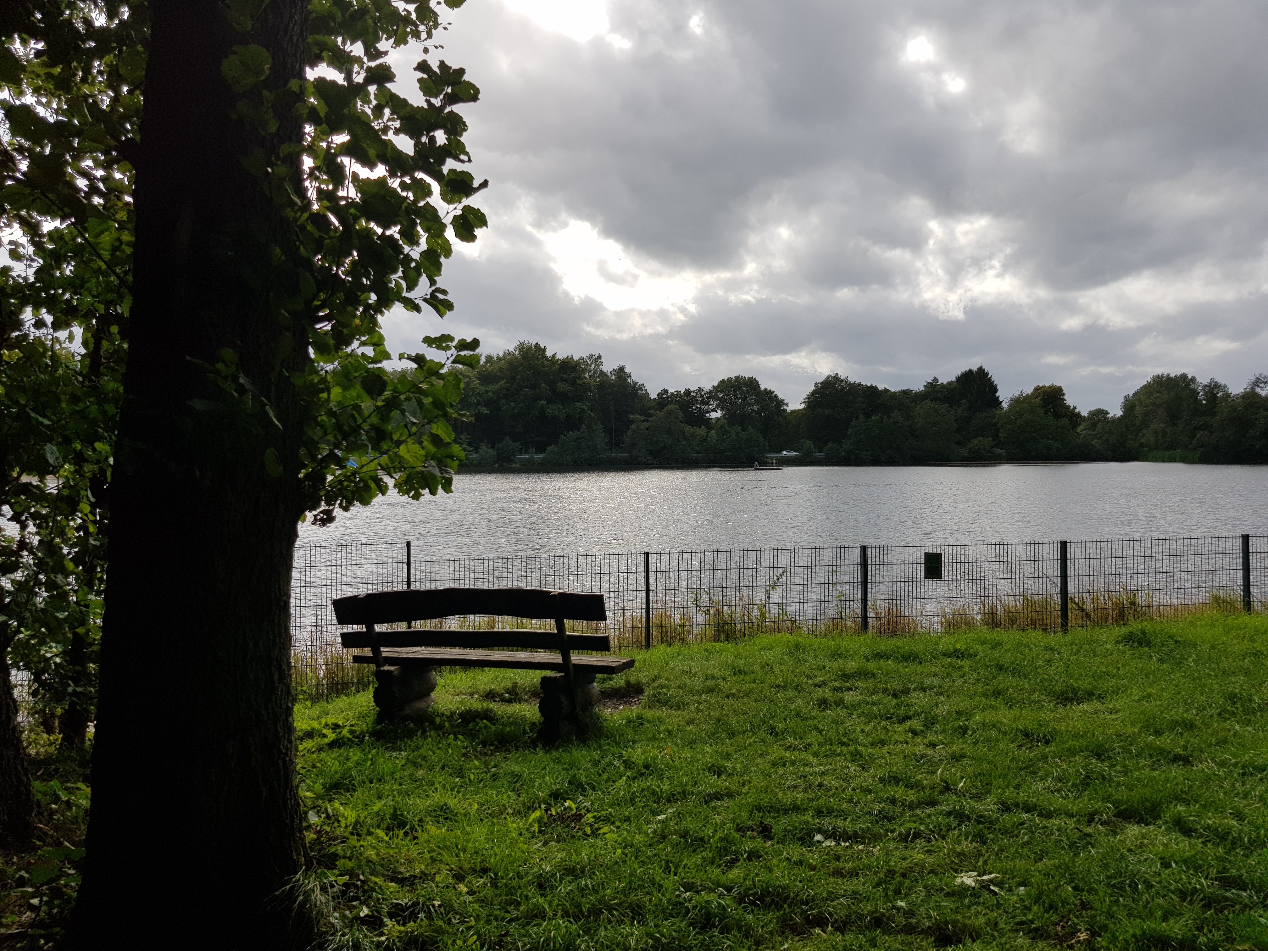 Wir erreichen tropfend den Heisterberger Weiher, meine Schuhe sehen erbärmlich aus. Schlammig und nass, aber innen sind sie trocken. Das ist die Hauptsache. Kerstin, die schon wieder suchend zurückgeblieben ist, kommt auch angeweht. Ihre Unterlagen gleichen Papier in der Vorbereitungsphase für Pappmaché, gefunden hat sie auch nichts. Irgendwie passt stimmungsmäßig alles perfekt zusammen.