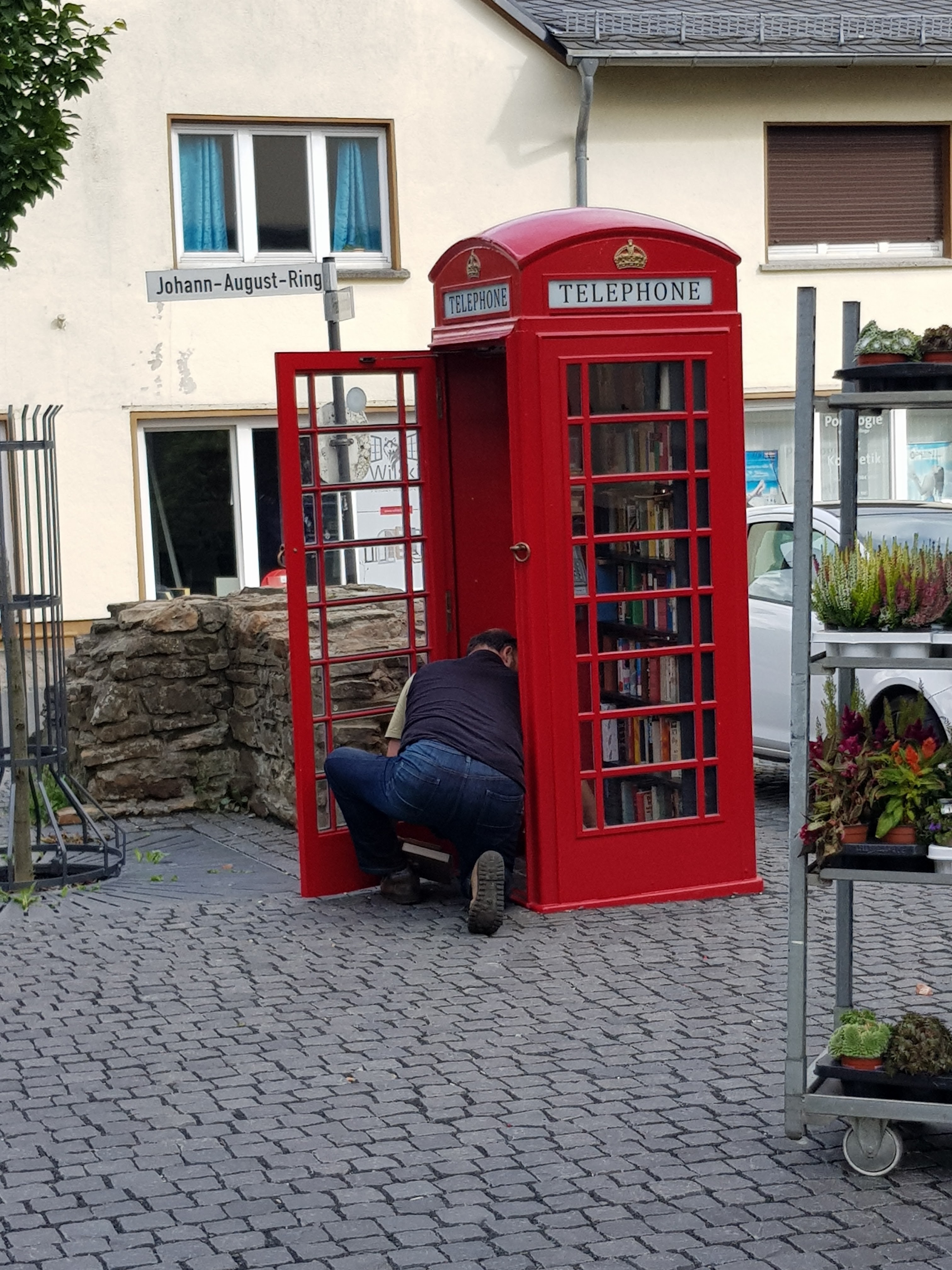 Während Gerd sich ein bisschen pflegt, eilen Kerstin und ich erwartungsvoll der Einkaufsstraße entgegen. Aber oh je. Wir finden eine Apotheke, ein Nagelstudio, eine Drogerie (ok, hier kann der Ohrring-Vorrat aufgefüllt werden), noch eine Apotheke, eine Bäckerei, eine Metzgerei, einen Schuhladen, noch eine Apotheke, diverse Banken, ein Papierwarengeschäft, einen merkwürdigen Buchladen, eine obligatorische Bücher-Telefonzelle.