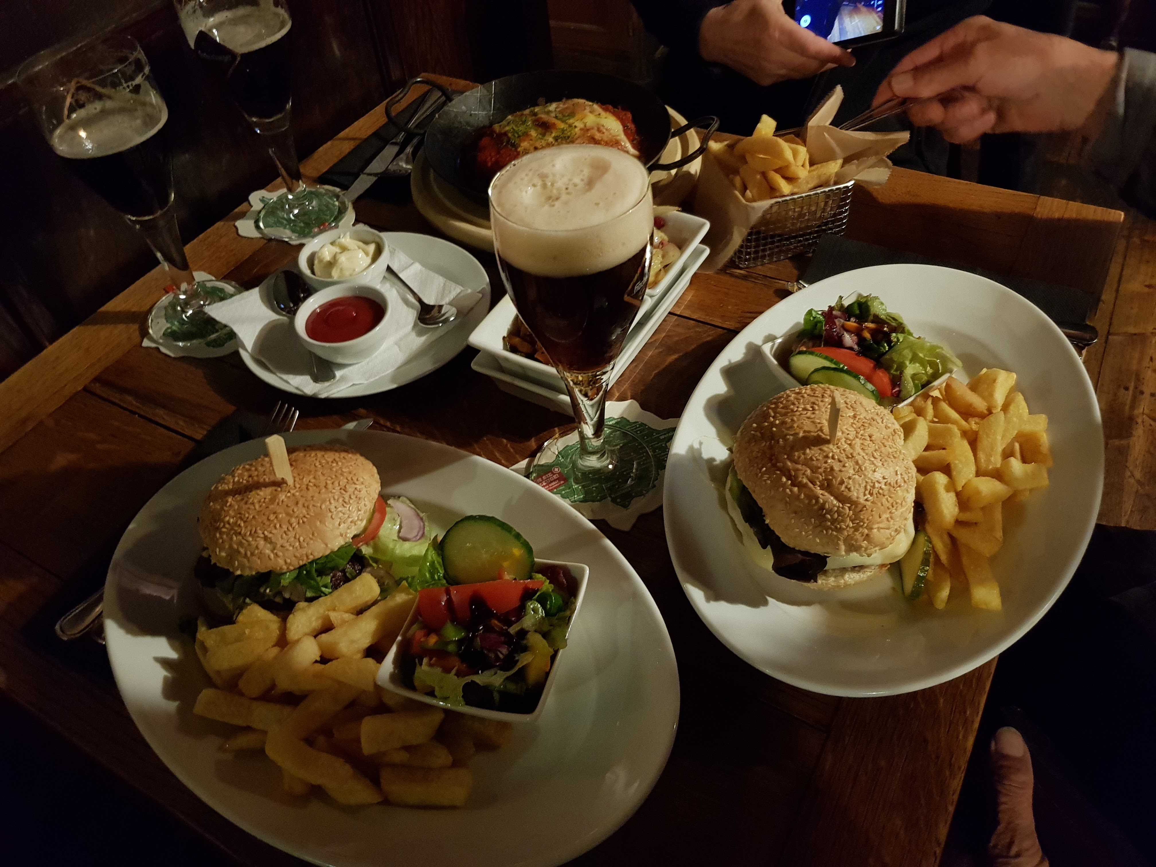 Über Kerstins Bett hängt ein Bild eines weinenden Kindes. Schrecklich! Aber sonst ist alles ok. Das gemeinsame Abendessen nehmen wir wie immer im hauseigenen Restaurant ein. Es gibt sogar eine Pinte, ein Raucherlokal. Dort beschließen Gerd und ich den Tag. Unsere Schritte heute: