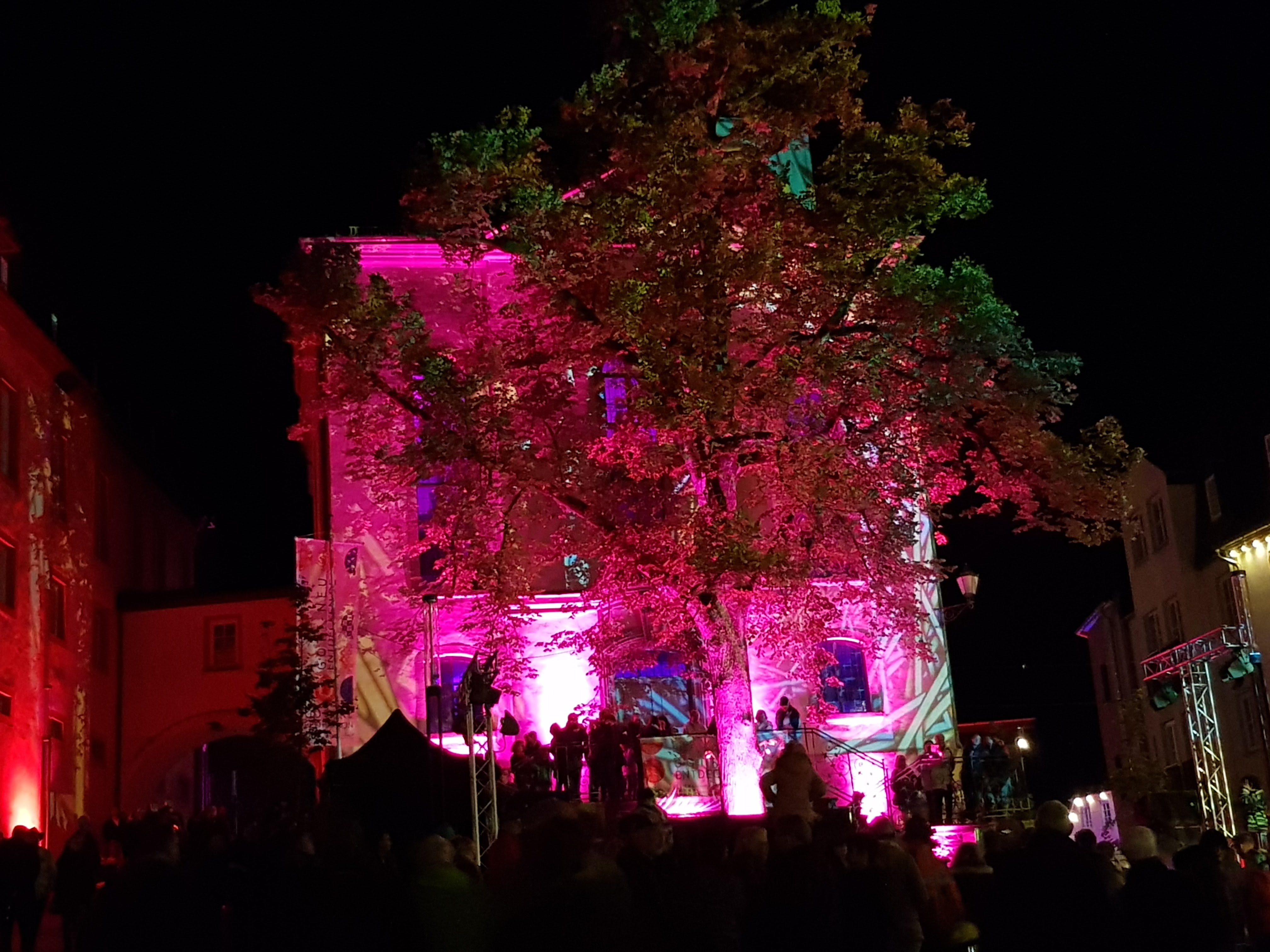 Natürlich wollen wir uns das Spektakel draußen anschauen und drehen nach dem Essen noch eine kleine Runde durch die Innenstadt. Überall sind Menschenmassen unterwegs, es brennen Kerzen in den Fenstern, die Leute haben Laternen in den Händen, es gibt Theaterstücke, Kunstinstallationen, bunte Häuser und Glühwein zum Aufwärmen. Es hat sich so drastisch abgekühlt, dass wir wie viele andere gerne davon Gebrauch machen.