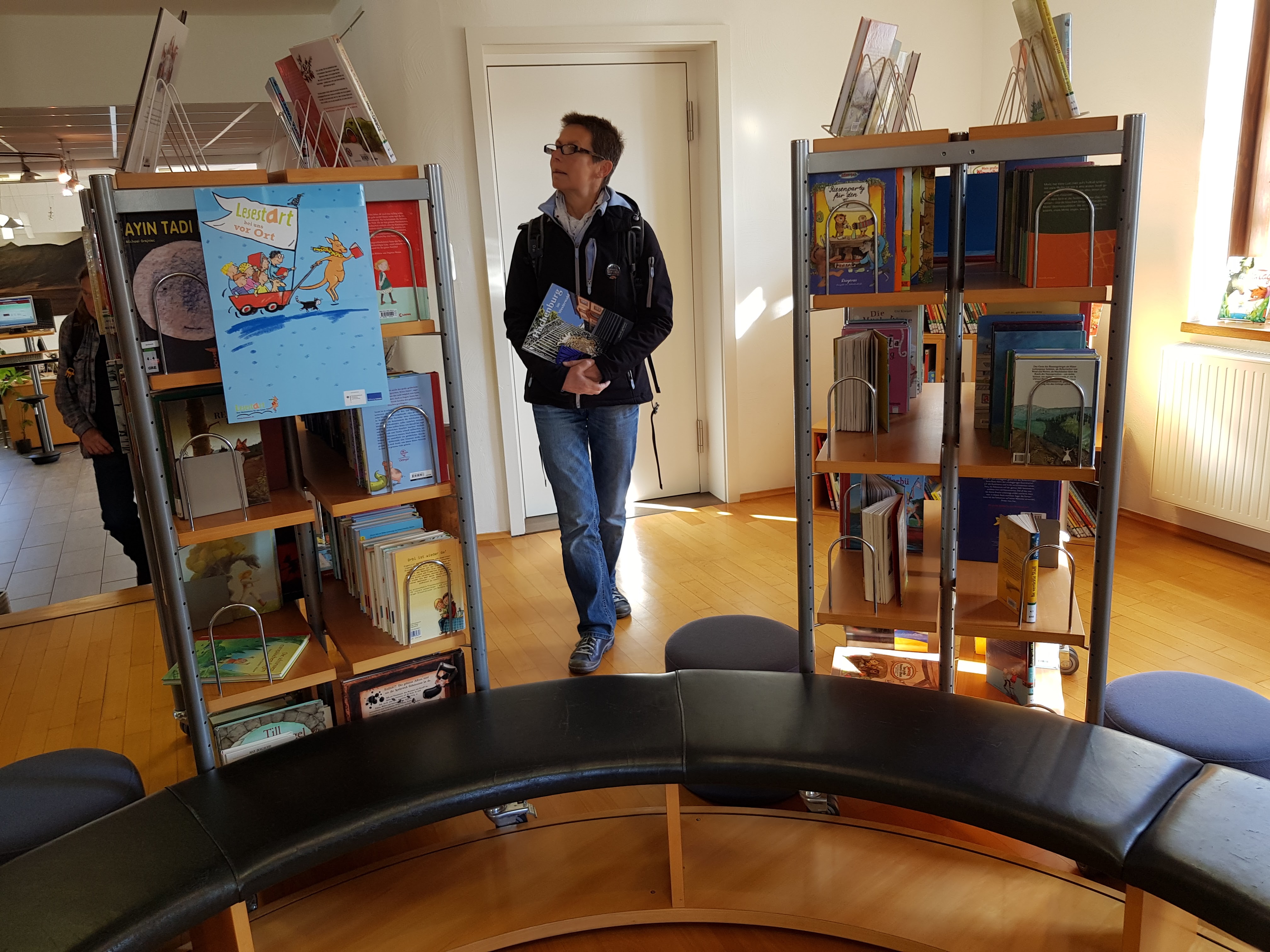 Glücklich mit unseren Errungenschaften schauen wir uns nun noch die Bibliothek an. Klein, aber fein, mit etlichen, verschachtelten Räumen. Alles ist sehr liebevoll eingerichtet und unglaublich ordentlich. Kerstin und ich staunen neidisch, vor allem über den Katalog. Viel besser als unser System.