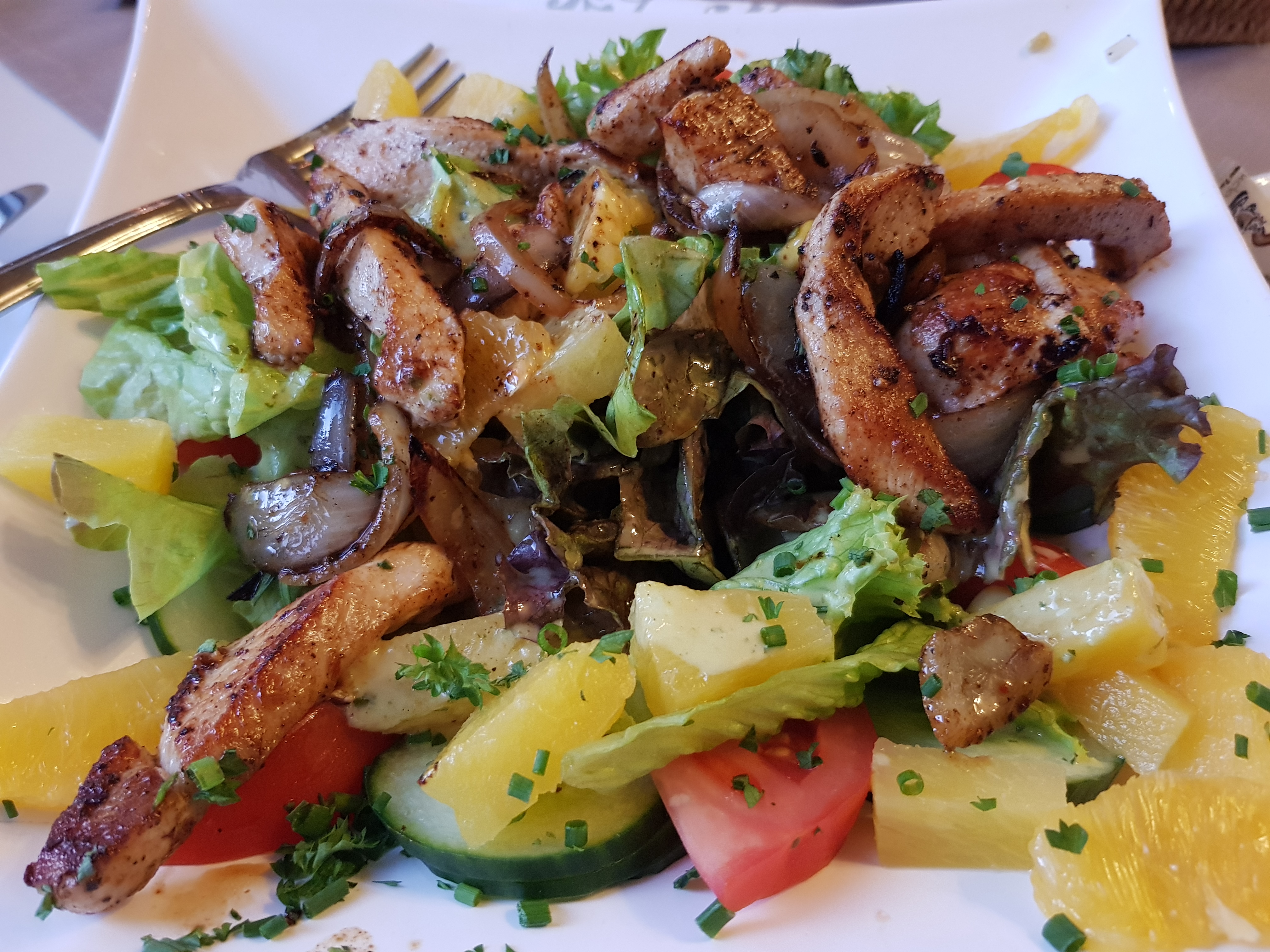 Sooooo lecker! Der nette junge Mann von der Rezeption ist auch gleichzeitig Kellner und laut Mappe im Zimmer steht er ebenfalls als Masseur zur Verfügung. Uiuiui! Nach Schuheputzen und einem Gläschen Wein ist dieser doch recht entspannte Tag für uns zu Ende.