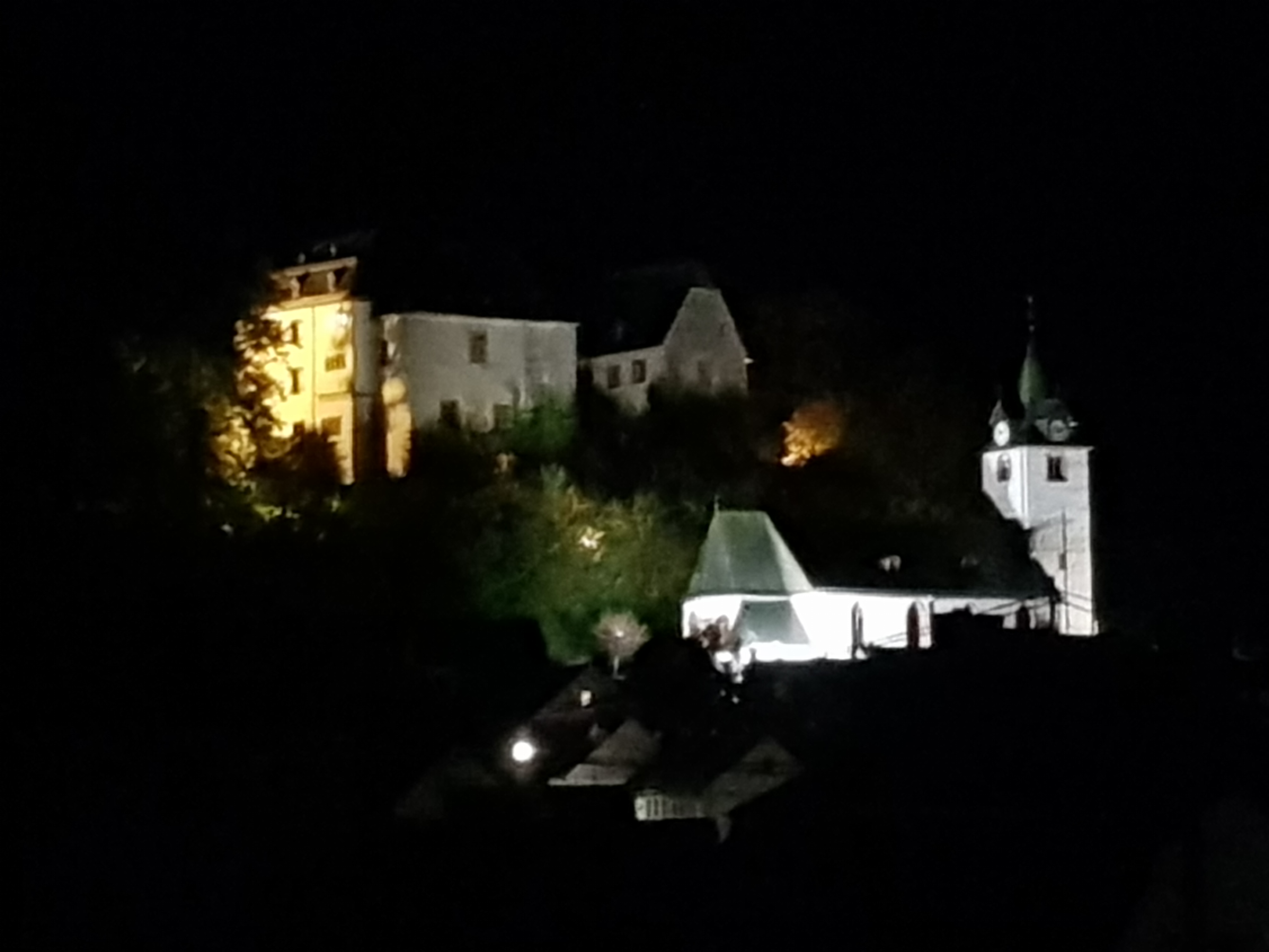 Im Hotel werden wir freundlich empfangen und bekommen wunderbares Essen. Das haben wir uns auch verdient! Die Inhaber besitzen auch eine Metzgerei, weswegen auf der Speisekarte nur Fleischgerichte zu finden sind. Ganz schlecht für Vegetarier. Wir erfahren auch, dass deren Eltern praktisch nach und nach das ganze Dorf gekauft haben einschließlich Kirche und Rathaus. Das ist jetzt alles Hotel- und Gastwirtschaftsbetrieb. Scheint gut zu laufen, denn die Hütte ist brechend voll. Unsere Zimmer sind zweckmäßig und ordentlich – was wollen wir mehr!