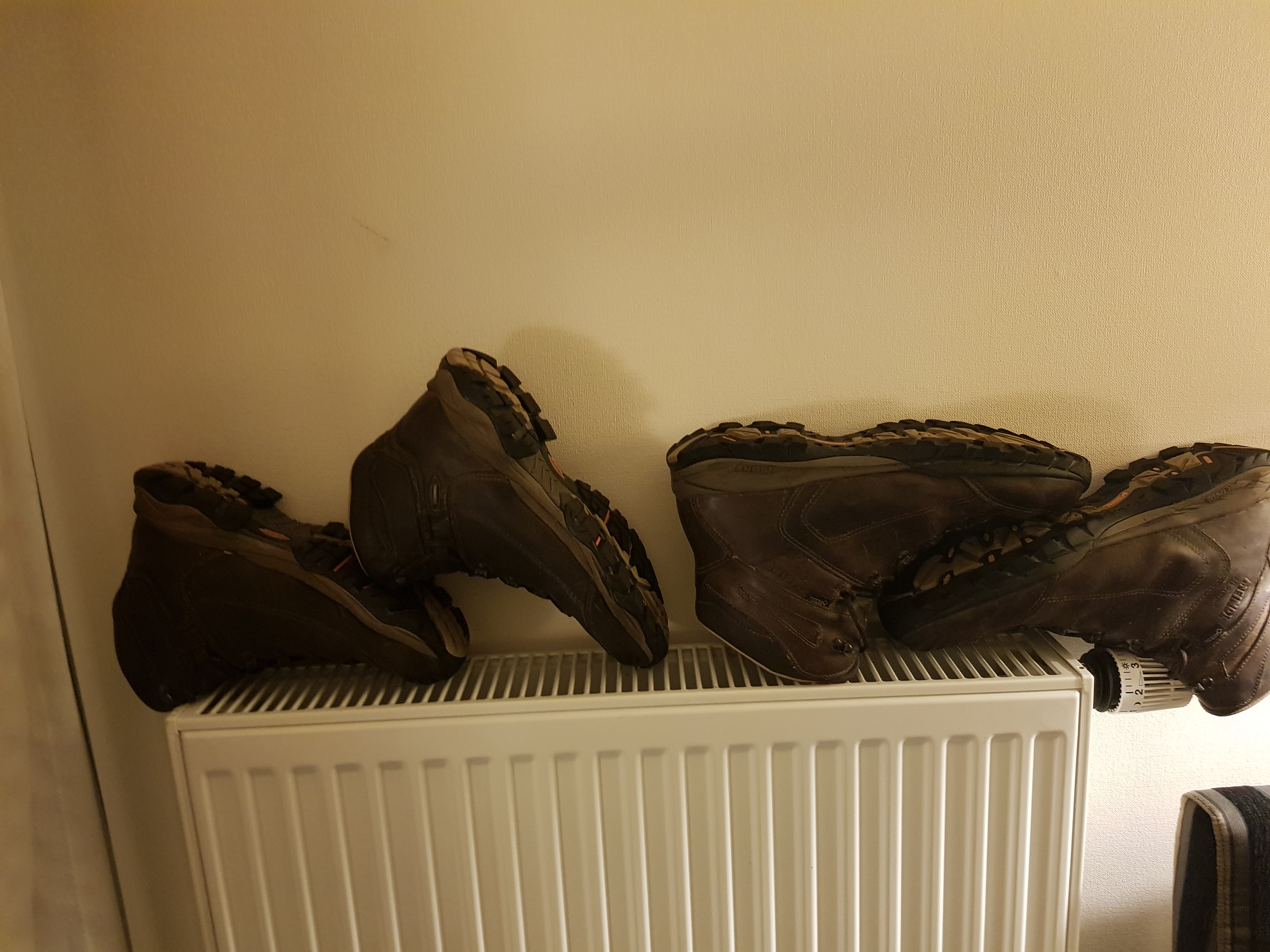 Es passiert mir jetzt immer öfter, dass mir morgens eine fremde Frau aus dem Spiegel entgegenschaut. Bisher ist es mir immer mehr oder weniger gelungen, sie zu vertreiben, aber heute habe ich keine Chance. Unter Aufbietung aller Möglichkeiten, die meine Wasch- und Schminktasche so hergibt, versuche ich, den Platz für mich freizuräumen, aber schließlich muss ich doch kapitulieren. Ich bin ja froh, dass ich meine verquollenen Augen überhaupt öffnen kann. Vor dem Frühstück möchte ich unsere Wanderschuhe wieder einfetten und suche meine gestern erworbene Schachtel mit Lederfett sowie das Läppsche. Statt dessen finde ich das verlorengeglaubte Schuhpflegeset, genau an der Stelle, wo ich es erwartet und gesucht hatte. Sachen gibts…