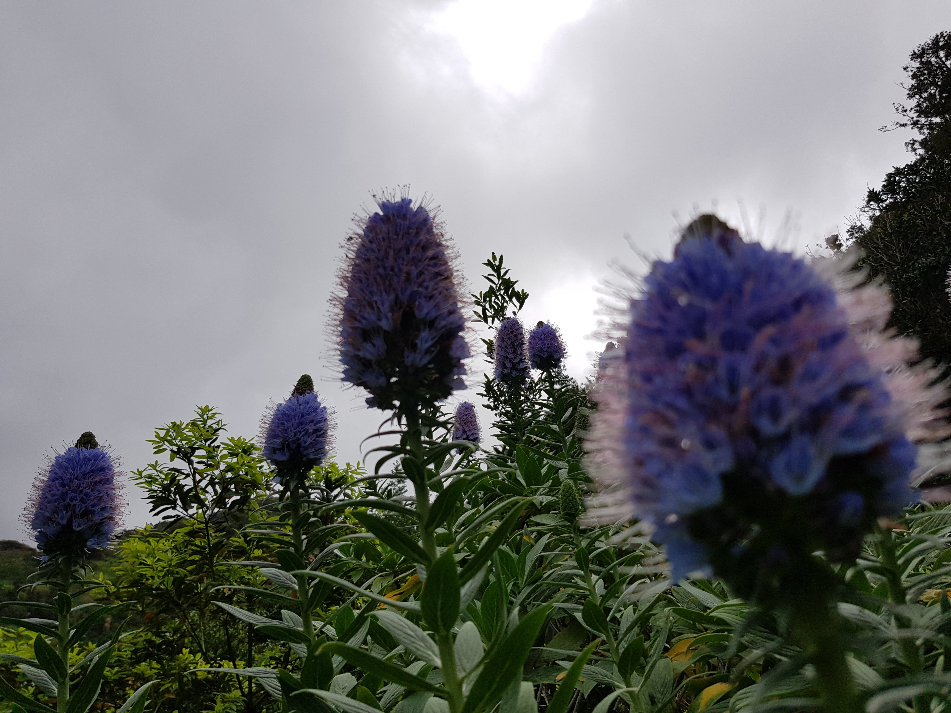 Nach dieser interessanten Exkursion gehts weiter Richtung Curral das Freiras, um uns dann in nicht endenwollenden Serpentinen zum Pico do Areiro in 1818 m Höhe hochzuschrauben, dem dritthöchsten Gipfel Madeiras. Vor uns zuckelt ein Auto in meinem Fahrtempo um die Kurven und strapaziert Wolframs Geduld zunehmend. Ich aktiviere alle in mir schlummernden telepathischen Kräfte und sende hypnotisierende Signale an den offensichtlich ängstlichen Fahrer: „In der nächsten Haltebucht parken! Lass uns ohne Überholmanöver an dir vorbei!“ Und was soll ich euch sagen – es funktioniert! Aber nur das eine Mal. Später hilft nur tief einatmen und die Luft anhalten, bis die Gefahr vorüber ist.