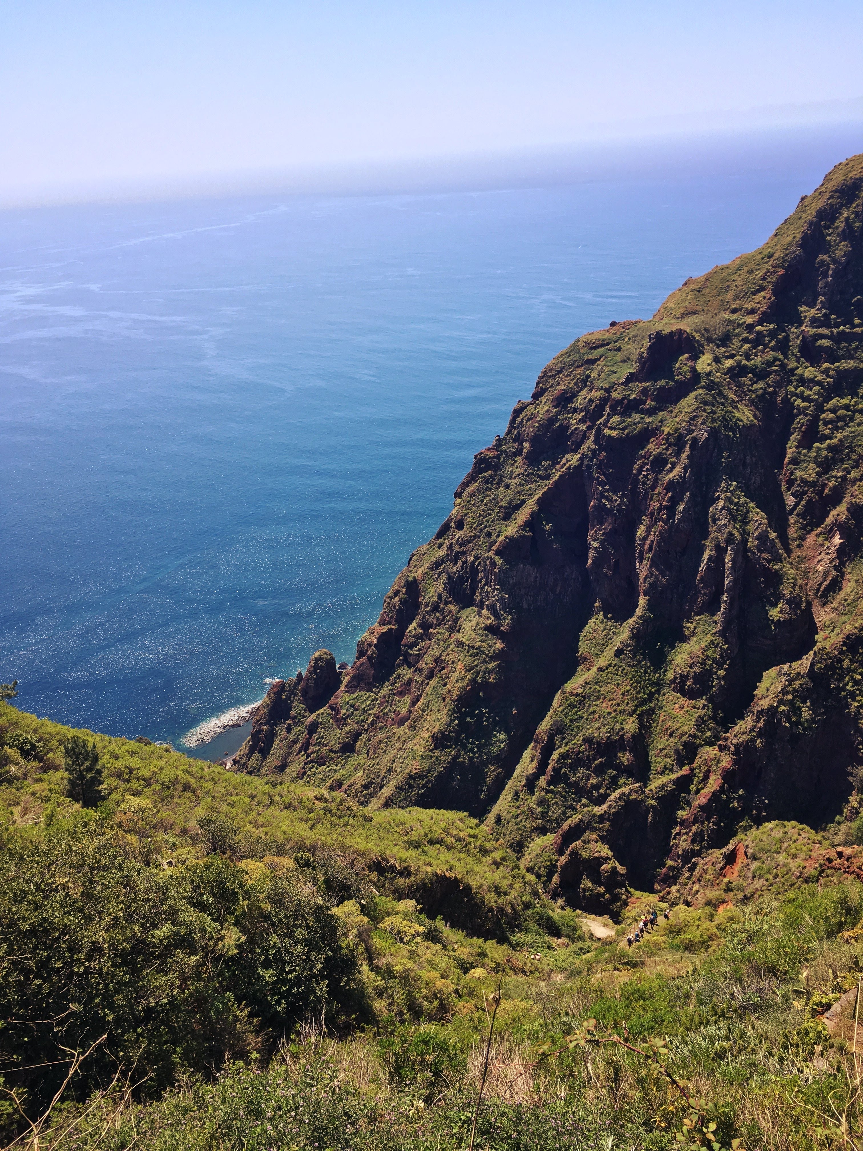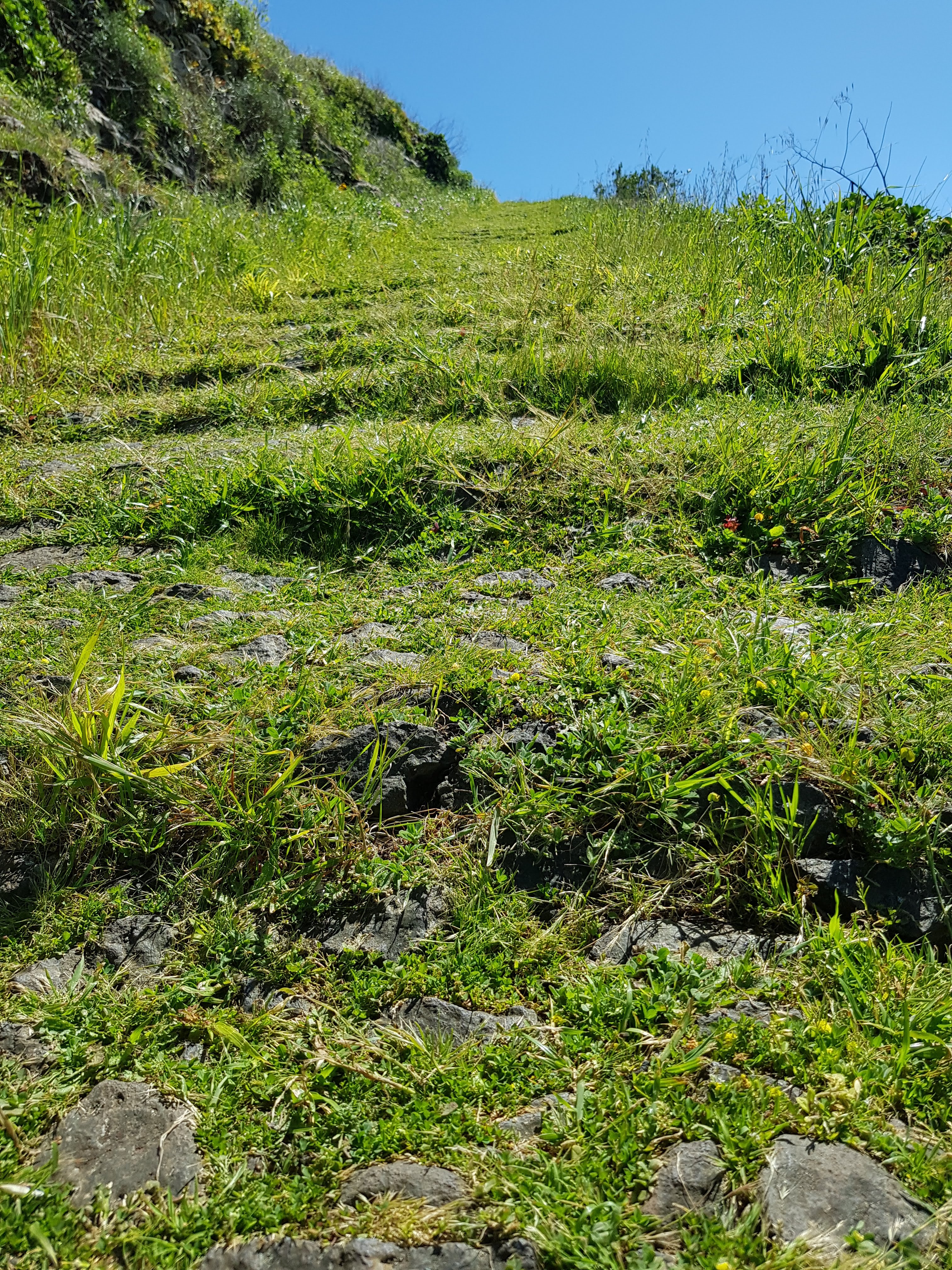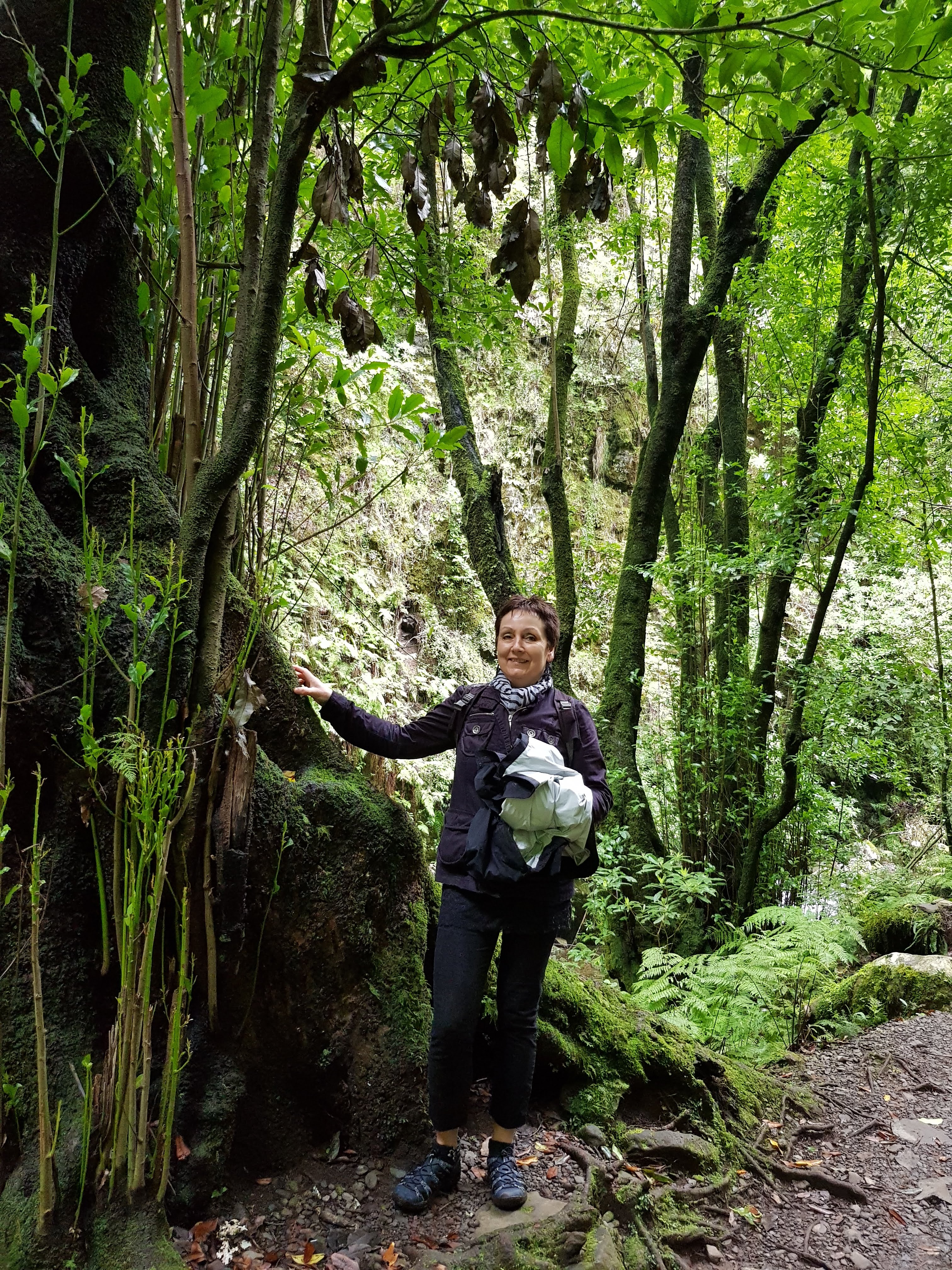 Es sind viele Menschen unterwegs und ich bin froh, dass ich nicht die einzige keuchende Person bin. Manche Stufen sind so hoch, dass die nächste zu Erklimmende sich gefühlt in Augenhöhe befindet. Schritt für Schritt wälze ich mich nach oben, wo Georg in entspannter Pose wartet, bis ich auf seiner Höhe bin, um dann mit federndem Schritt den nächsten Abschnitt vorauszuschlendern. Wolfram hat schon vor uns den Rückweg angetreten und wartet liegend auf uns im Auto. Ich hechle Georg hinterher und plumpse japsend, aber glücklich auf den Beifahrersitz. Nun rollen wir die 1800 Meter wieder bergab runter nach Funchal und passieren ganz unterschiedliche Vegetationszonen. Es gibt enorm viel Ähnlichkeiten mit den Alpen, aber auch stellenweise mit unseren Mittelgebirgen. Und überall Wege, die ich noch nicht gewandert bin! Wo die wohl hinführen, würde ich so gerne auskundschaften…