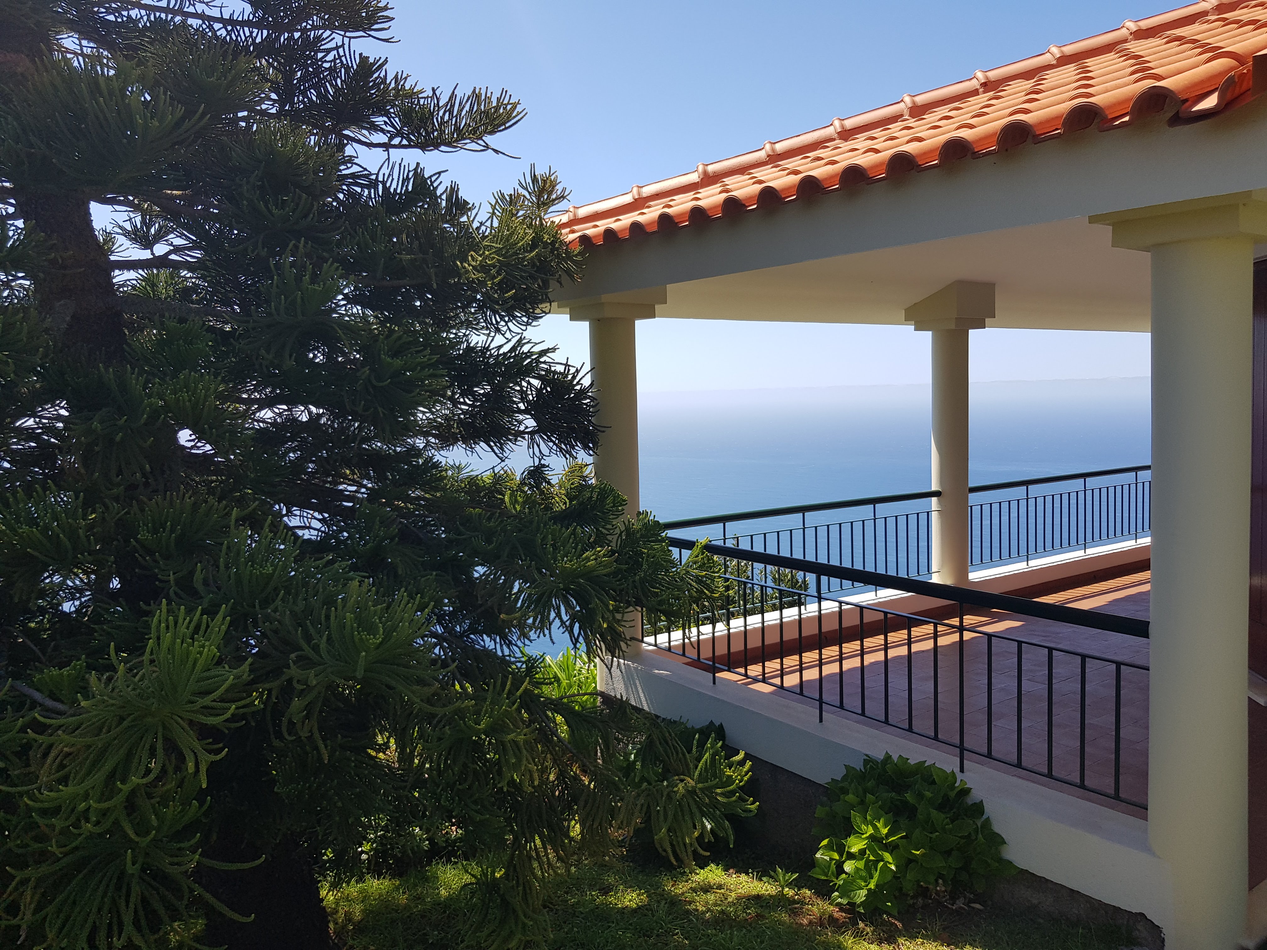Die Fahrt geht zunächst nach Ribeira Brava, einem Ort an der überwiegend sonnigen Südküste. Die Entfernungen sind auf der Insel überschaubar, so dass wir ziemlich schnell vor Ort sind. Wir schauen uns ein bisschen um, schlendern durch die zwei bis drei nennenswerten Gassen mit den üblichen Souvenirläden. Davor stehen Kundenfänger, die sich routiniert um Kundschaft bemühen, was aber eher nach hinten losgeht. Gerne würde ich ungestört dort stöbern und bestimmt auch was kaufen, aber nicht, wenn man mir nicht von der Seite weicht. In Strandnähe stehen zwei hässliche 70er-Jahre-Hotels. Nach einer Viertelstunde haben wir das Gefühl, alles Wichtige gesehen zu haben und fahren weiter an der Südküste nach Ponta do Sol. Hier parken wir an der Uferpromenade, begutachten die dortigen Hotels im britischen Kolonialstil und entdecken ein Café auf einer Klippe, das über eine Felsentreppe zu erreichen ist. Ein Blickaustausch genügt – wir sind uns einig. Kaffeepause! Und Eis! Ich wähle den Sonnenplatz, die Jungs freuen sich über Schatten unter dem Schirm.